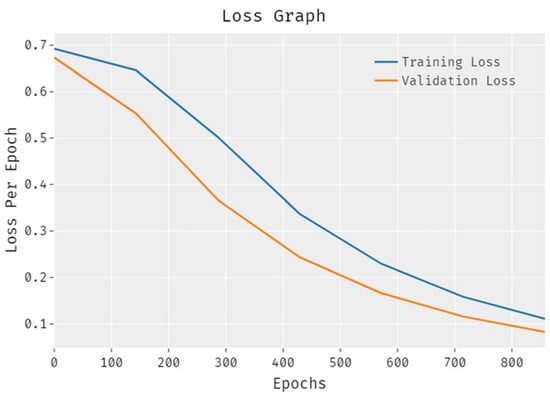 The loss outcome analysis results accomplished by the proposed EDLCDS-BCDC technique on test data are portrayed in Figure 7. The results reveal that the EDLCDS-BCDC approach reduced the validation loss as compared to the training loss. It is also shown that the loss values were saturated with increasing numbers of epochs.