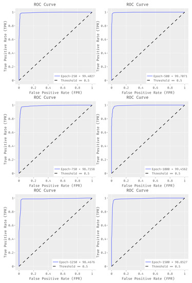 Figure 8 illustrates the set of ROC curves obtained by EDLCDS-BCDC technique under distinct epochs. The results show that the proposed EDLCDS-BCDC technique achieved an increased ROC of 99.4027 under 250 epochs, 99.7071 under 500 epochs, 98.7158 under 750 epochs, 99.4562 under 1000 epochs, 98.4676 under 1250 epochs, and 98.8527 under 1500 epochs.
