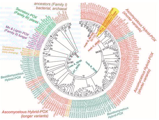 Chicago/Turabian StyleZámocký, Marcel, Miloš Musil, Maksym Danchenko, Peter Ferianc, Katarína Chovanová, Peter Baráth, Andrej Poljovka, and David Bednář. 2022. "Deep Insights into the Specific Evolution of Fungal Hybrid B Heme Peroxidases" Biology 11, no. 3: 459. https://doi.org/10.3390/biology11030459