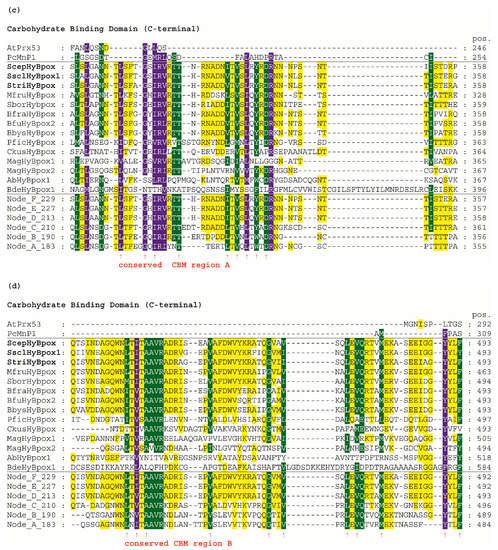 - Zámocký, M.; Janeček, Š.; Obinger, C. Fungal Hybrid B Heme Peroxidases-Unique Fusions of a Heme Peroxidase Domain with a Carbohydrate-binding Domain. Sci. Rep. 2017, 7, 9393. [Google Scholar] [CrossRef] [PubMed]