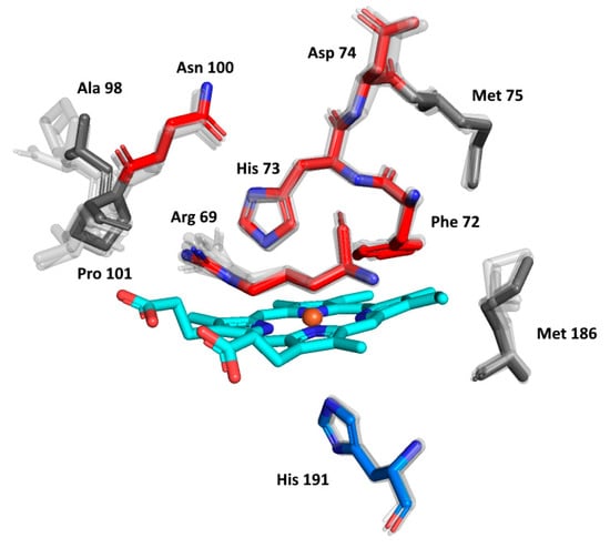- Nigro, A.P.; Goodin, D.B. Reaction of N-hydroxyguanidine with the Ferrous-oxy State of a Heme Peroxidase Cavity Mutant: A Model for the Reactions of Nitric Oxide Synthase. Arch. Biochem. Biophys. 2010, 500, 66–73. [Google Scholar] [CrossRef] [PubMed]