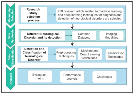 Here, a thorough study on the prevalence and diagnosis of major human neurological and neuropsychiatric illnesses was conducted using a systematic review of methodologies. Figure 2 depicts the overall workflow of this study.