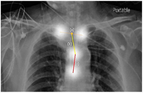 - Goodman, L.R.; Conrardy, P.A.; Laing, F.; Singer, M.M. Radiographic evaluation of endotracheal tube position. AJR Am. J. Roentgenol. 1976, 127, 433–434. [Google Scholar] [CrossRef]