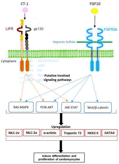 - Chan, S.S.K.; Li, H.J.; Hsueh, Y.C.; Lee, D.S.; Chen, J.H.; Hwang, S.M.; Chen, C.Y.; Shih, E.; Hsieh, P.C.H. Fibroblast growth factor-10 promotes cardiomyocyte differentiation from embryonic and induced pluripotent stem cells. PLoS ONE 2010, 5, e14414. [Google Scholar] [CrossRef] [Green Version]
