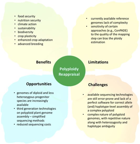 Figure 3. Benefits, opportunities, limitations, and challenges of reappraisal of polyploidy events in crops.