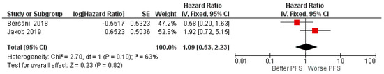 | Hess (2017) [56] | Germany | RT | 149 (123, 26) | 61 months | HNSCC (oropharynx, n = 78; hypopharynx, n = 71) | median | miR-155, miR-200b, miR-146a. | OS: HR 1.90 (1–1.37) p = 0.051 |