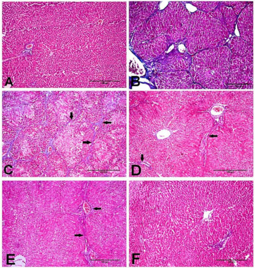 - El Awdan, S.A.; Rahman, R.F.A.; Ibrahim, H.M.; Hegazy, R.R.; el Marasy, S.A.; Badawi, M.; Arbid, M.S. Regression of fibrosis by cilostazol in a rat model of thioacetamide-induced liver fibrosis: Up regulation of hepatic cAMP, and modulation of inflammatory, oxidative stress and apoptotic biomarkers. PLoS ONE 2019, 14, e0216301. [Google Scholar] [CrossRef] [PubMed]