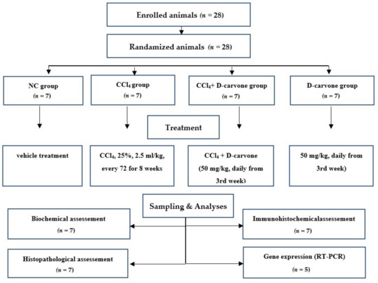 Ogaly HA, Aldulmani SAA, Al-Zahrani FAM, Abd-Elsalam RM. D-Carvone Attenuates CCl4-Induced Liver Fibrosis in Rats by Inhibiting Oxidative Stress and TGF-ß 1/SMAD3 Signaling Pathway. Biology. 2022; 11(5):739. https://doi.org/10.3390/biology11050739