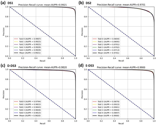 Meanwhile, according to these parameters, we evaluated the performance of the proposed model by constructing an AUC, the area under the receiver operating characteristic (ROC) curves, and AUPR, which is the area under the precision-recall (PR) curve. AUPR represents an appropriate criterion if the count of negative and positive samples is not the same, just as suggested by [44]. A larger AUC shows a better predictor. We also exploited a five-fold cross-validation and the mean value to assess the performance of methods.