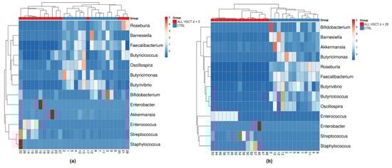 - Lähteenmäki, K.; Wacklin, P.; Taskinen, M.; Tuovinen, E.; Lohi, O.; Partanen, J.; Mättö, J.; Vettenranta, K. Haematopoietic stem cell transplantation induces severe dysbiosis in intestinal microbiota of paediatric ALL patients. Bone Marrow Transplant. 2017, 52, 1479–1482. [Google Scholar] [CrossRef][Green Version]