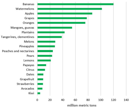 Global fruit production in 2020 [28].
