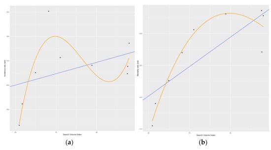 3.1. Relationship between Related Web Queries and the Age-Standardized Cancer Incidence/Cancer Mortality Rate in Romania