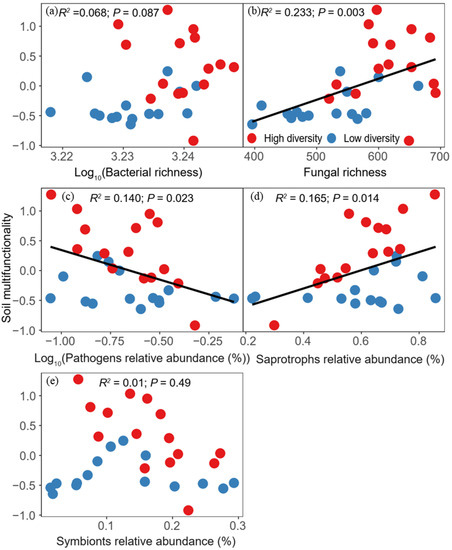 - Li, J.; Delgado-Baquerizo, M.; Wang, J.T.; Hu, H.W.; Cai, Z.J.; Zhu, Y.N.; Singh, B.K. Fungal richness contributes to multifunctionality in boreal forest soil. Soil Biol. Biochem. 2019, 136, 107526. [Google Scholar] [CrossRef]