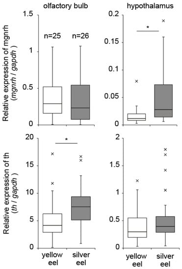 - Nguyen, A.T.; Chia, J.H.Z.; Kazeto, Y.; Lokman, P.M. Expression of gonadotropin subunit and gonadotropin receptor genes in wild female New Zealand shortfinned eel (Anguilla australis) during yellow and silver stages. Gen. Comp. Endocrinol. 2019, 272, 83–92. [Google Scholar] [CrossRef]