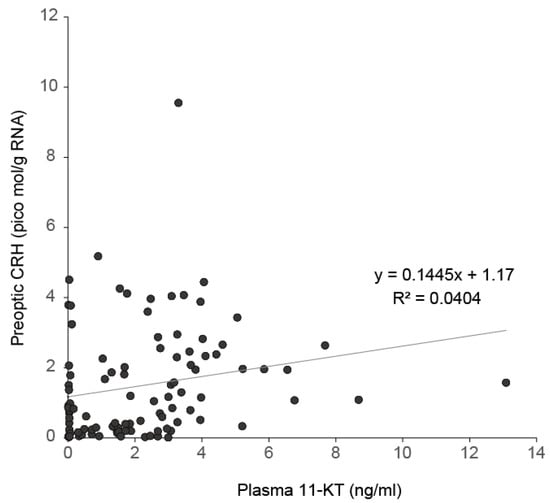 - Clements, S.; Schreck, C.B.; Larsen, D.A.; Dickhoff, W.W. Central administration of corticotropin-releasing hormone stimulates locomotor activity in juvenile chinook salmon (Oncorhynchus tshawytscha). Gen. Comp. Endocrinol. 2002, 125, 319–327. [Google Scholar] [CrossRef] [PubMed]