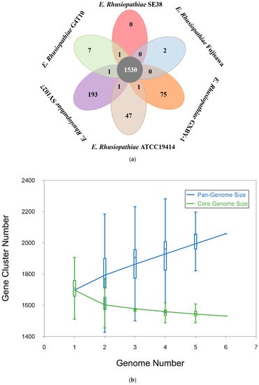 - Zhao, Y.B.; Jia, X.M.; Yang, J.H.; Ling, Y.C.; Zhang, Z.; Yu, J.; Wu, J.Y.; Xiao, J.F. PanGP: A tool for quickly analyzing bacterial pan-genome profile. Bioinformatics 2014, 30, 1297–1299. [Google Scholar] [CrossRef]