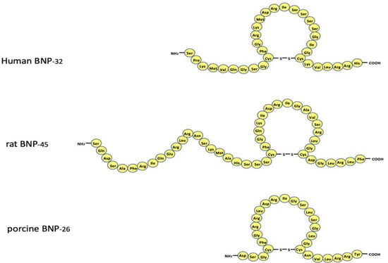 - Semenov, A.G.; Seferian, K.R. Biochemistry of the human B-type natriuretic peptide precursor and molecular aspects of its processing. Clin. Chim. Acta 2011, 412, 850–860. [Google Scholar] [CrossRef]