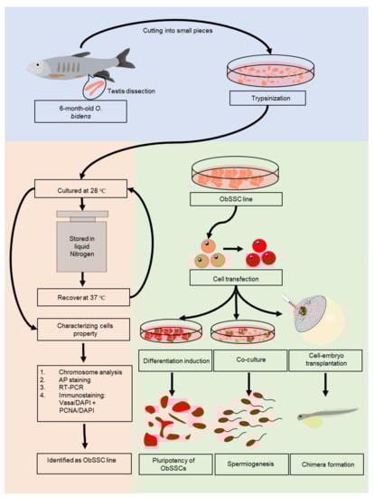 - Hong, Y.; Liu, T.; Zhao, H.; Xu, H.; Wang, W.; Liu, R.; Chen, T.; Deng, J.; Gui, J. Establishment of a normal medakafish spermatogonial cell line capable of sperm production in vitro. Proc. Natl. Acad. Sci. USA 2004, 101, 8011–8016. [Google Scholar] [CrossRef] [Green Version]