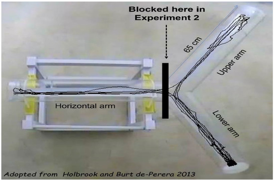 In Experiment 2, access to the horizontal arm was blocked at the junction of the three arms of the apparatus, and the rodents could only travel along the upper and lower arms (Figure 1).