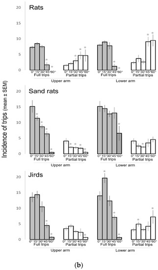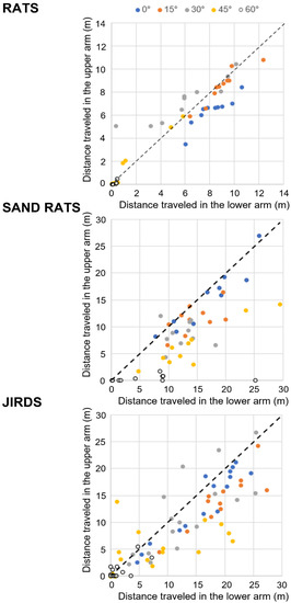 3.5. Sand Rats and Jirds but Not Rats Traveled More along the Lower Arm Than the Upper Arm
