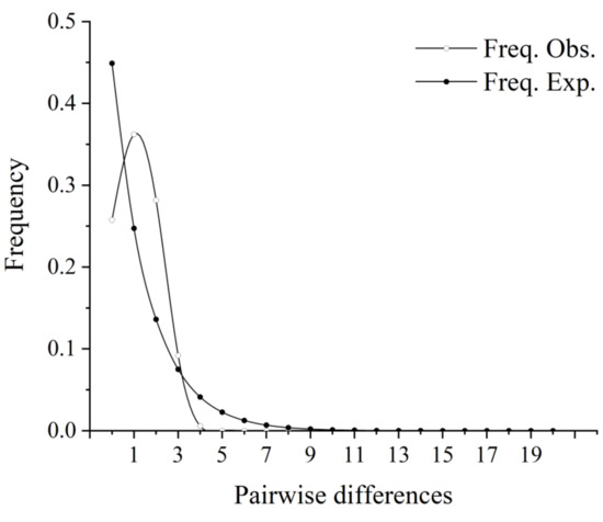 The observed pairwise difference and the expected mismatch distributions of N. taihuensis.
