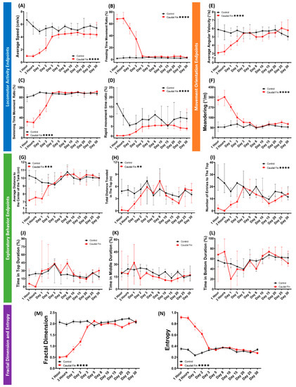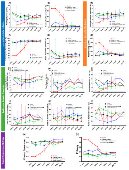 | Control vs. Caudal Fin + Lidocaine | <0.0001 | **** | ||