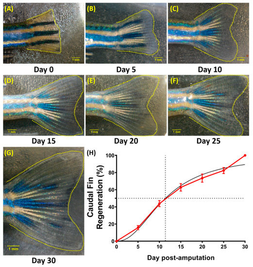 3.5. Regeneration of the Caudal Fin in Adult Zebrafish