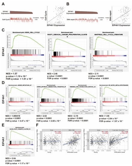 The following supporting information can be downloaded at https://www.mdpi.com/article/10.3390/biology11070975/s1: Table S1: The gene lists of positive correlation with EIF4A1; Table S2: The gene lists of negative correlation with EIF4A1; and Table S3: TCGA cases and accession number.