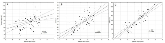 - Mirwald, R.L.; Baxter-Jones, A.D.G.; Bailey, D.A.; Beunen, G.P. An Assessment of Maturity from Anthropometric Measurements. Med. Sci. Sports Exerc. 2002, 34, 689–694. [Google Scholar] [CrossRef] [PubMed]