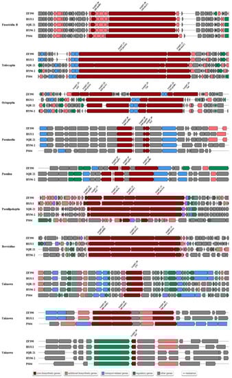 3.5. Gene Clusters Involved in the Synthesis of Secondary Metabolites