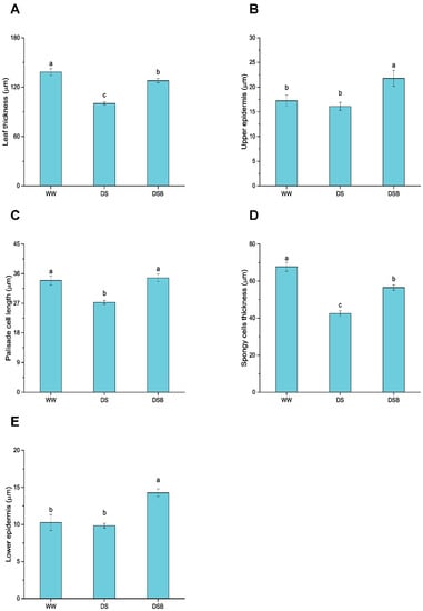 4.1. Tobacco Plants Adapted to Drought Stress by Promoting Leaf Thickness under 2,4-Epibrassinolide (EBR) Application