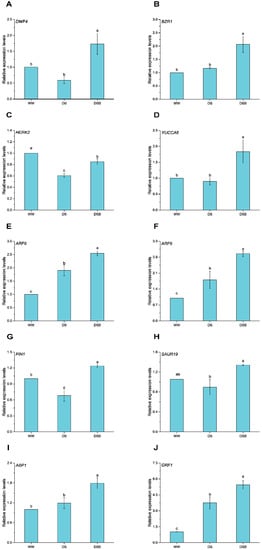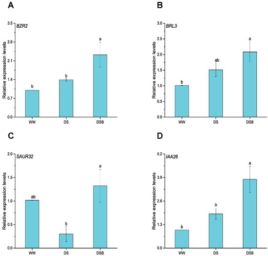 3.7. Drought Tolerance-Related Gene Expression via BR and IAA Signaling Pathways