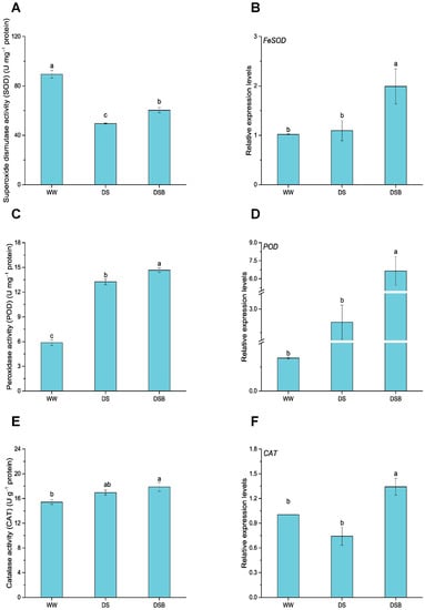 3.4. Changes in Antioxidant Enzyme Activities and Their Related Gene Expression