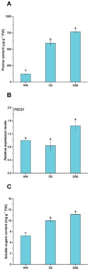 2.3.3. Determination of Proline and Soluble Sugar Contents