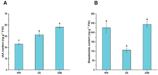 2.4. Phytohormone (IAA and BR) Contents Determination