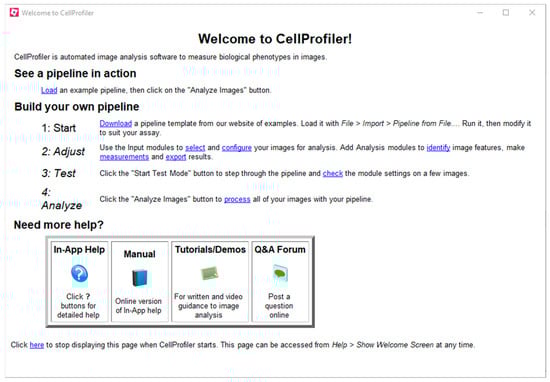 The data presented in this study are available on request from the corresponding author. The pipeline made and described in this article can be obtained from https://cellprofiler.org/published-pipelines (accessed on 7 July 2022).