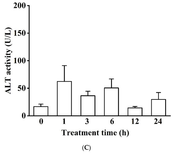 3.1.2. Blood Serum Biochemistry (LDH, ALP, ALT, GLU, TC, TG, and ALB)