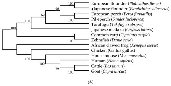 - Huang, Y.; Wu, S.; Zhang, J.; Wen, H.; Zhang, M.; He, F. Methylation status and expression patterns of myomaker gene play important roles in postnatal development in the Japanese flounder (Paralichthys olivaceus). Gen. Comp. Endocrinol. 2019, 280, 104–114. [Google Scholar] [CrossRef]