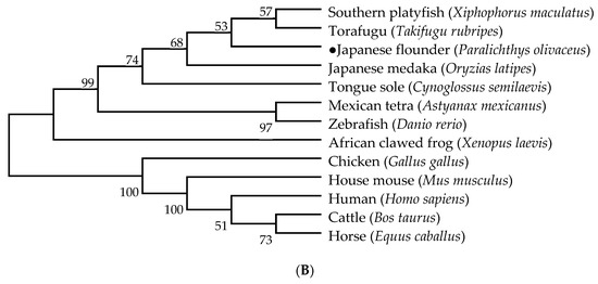 - Si, Y.; Ding, Y.; He, F.; Wen, H.; Li, J.; Zhao, J.; Huang, Z. DNA methylation level of cyp19a1a and Foxl2 gene related to their expression patterns and reproduction traits during ovary development stages of Japanese flounder (Paralichthys olivaceus). Gene 2016, 575, 321–330. [Google Scholar] [CrossRef]
