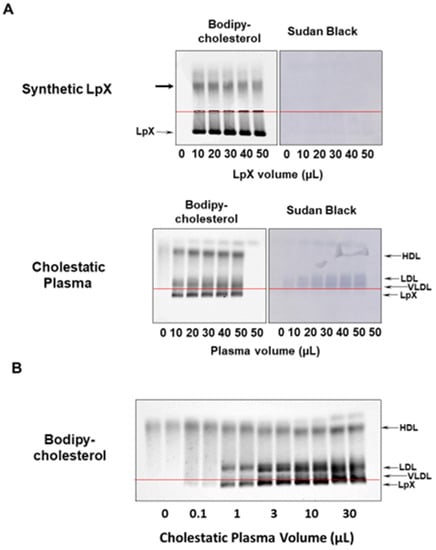 - Freeman, L.A.; Shamburek, R.D.; Sampson, M.L.; Neufeld, E.B.; Sato, M.; Karathanasis, S.K.; Remaley, A.T. Plasma Lipoprotein-X Quantification on Filipin-Stained Gels: Monitoring Recombinant LCAT Treatment Ex Vivo. J. Lipid Res. 2019, 60, 1050–1057. [Google Scholar] [CrossRef]