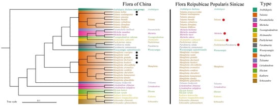 - Sima, Y.K.; Lu, S.G.; Han, M.Y.; Ma, H.F.; Xu, T.; Xu, L.; Hao, J.B.; Li, D.; Chen, S.Y. Advances in magnoliaceae systematic research. J. West China For. Sci. 2012, 41, 116–127. [Google Scholar] [CrossRef]