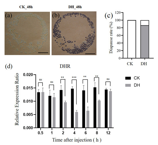3.1. The Injection of DH Induces Progeny Embryonic Diapause in a Non-Diapause Silkworm Strain