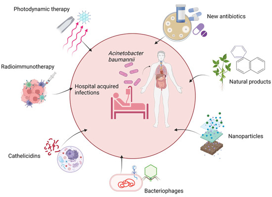 Possible future therapies for A. baumannii infection. The figure was made with www.biorender.com (accessed on 25 July 2022).