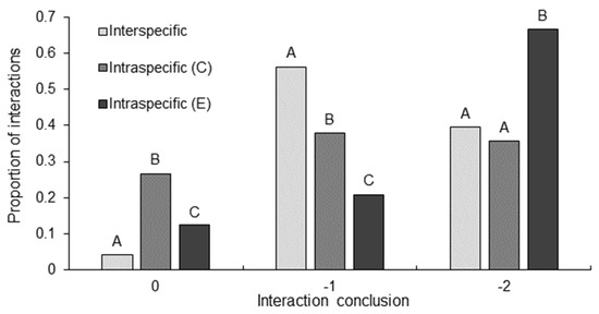 3.2. Interspecific Interaction Outcome and Initiation