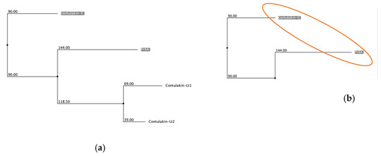- Kikuchi, A.K.V.; Tayo, L.L. Principal Component Analysis Provides Insights on the Evolutionary Divergence of Conotoxins. In Proceedings of the 2022 10th International Conference on Bioinformatics and Computational Biology (ICBCB), Hangzhou, China, 13–15 May 2022; pp. 41–48. [Google Scholar]