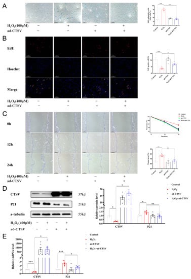 3.2. CTSV Expression Is Inhibited in H2O2-Induced Cellular Senescence