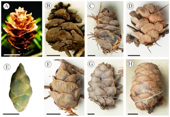 - Fu, L.K.; Li, N.; Elias, T.S.; Mill, R.R. Pinaceae. In Flora of China; Wu, Z.Y., Ed.; Science Press: Beijing, China; Missouri Botanical Garden Press: St. Louis, MO, USA, 1999; Volume 4, pp. 11–52. [Google Scholar]