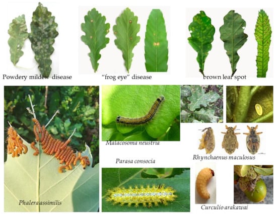 - Li, X.S.; Wu, Y.; Dong, X.G.; Zhao, S.W.; Mu, X.Q.; Cheng, Z.L.; Zhao, N.; Teng, X.Y.; Shi, S.P.; Yang, R.S.; et al. Checklist of major oak pests in China (Ⅰ). Sinece Seric. 2010, 36, 330–336. [Google Scholar]