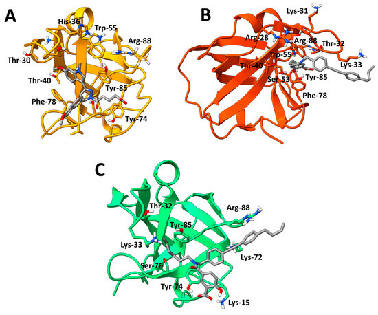 | Thr-30 | −1.48 ± 1.98 | Lys-94 | −1.76 ± 1.74 | Arg-88 | −1.38 ± 2.33 | Tyr-74 | −1.85 ± 1.32 | Phe-98 | −1.59 ± 0.984 |