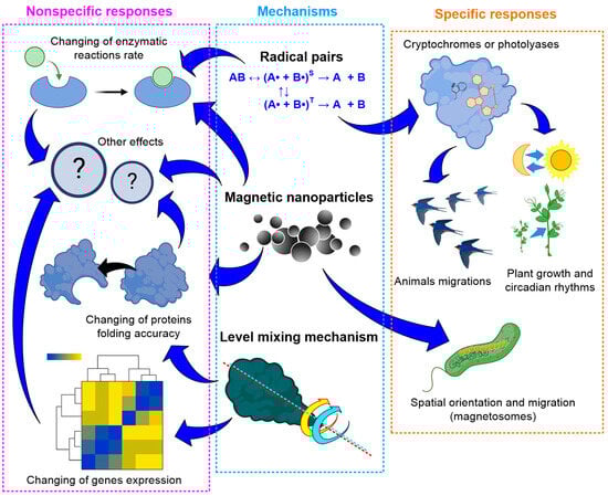- Binhi, V.N.; Rubin, A.B. Theoretical Concepts in Magnetobiology after 40 Years of Research. Cells 2022, 11, 274. [Google Scholar] [CrossRef]